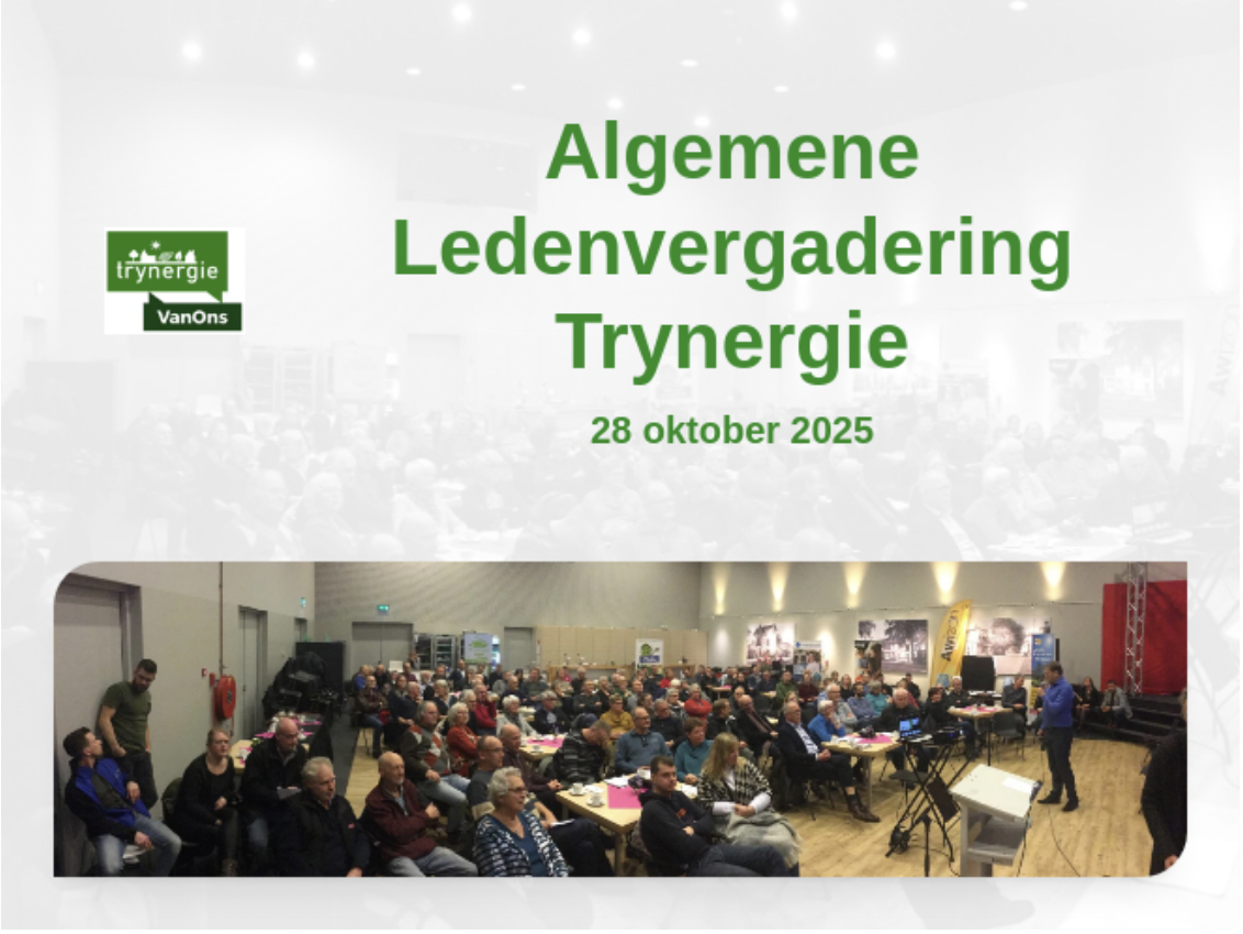 Trynergie is onze lokale energiecoöperatie zonder winstoogmerk en wordt gerund door vrijwilligers. Inwoners, verenigingen, bedrijven en instellingen in de Trynwâlden kunnen lid worden van Trynergie. De opbrengsten van de verkoop van stroom en gas vloeien terug naar de Trynwâlden en worden benut voor de duurzame ontwikkeling in de regio.